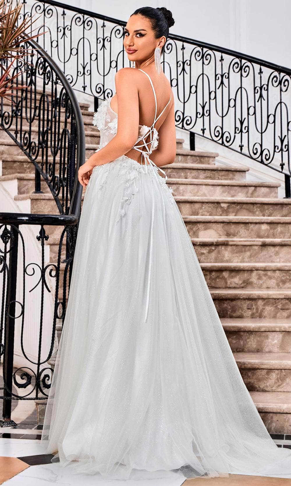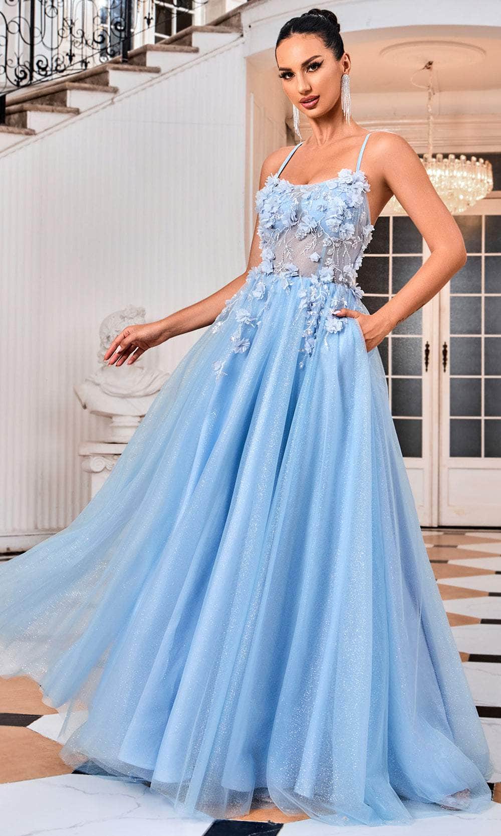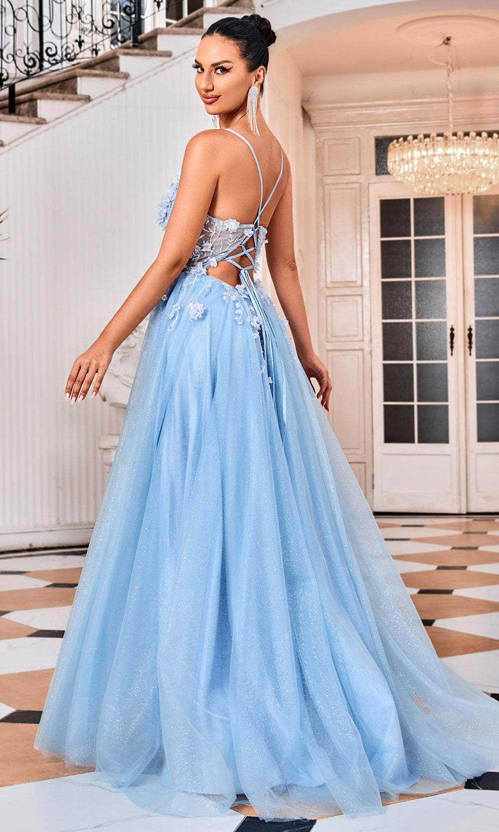 In a realm where elegance and charm converge, this stunning Dress J24001 creation is a catch. The gown emerges as a masterpiece of couture craftsmanship. Its enchanting allure begins with delicate spaghetti straps that lead to a graceful scoop neckline, framing the wearers beauty with subtle grace. The sheer bodice is adorned with intricate 3D floral appliques, adding a touch of enchantment to its aesthetic. The corset tie-back ensures a flattering fit, while the glitter tulle skirt flows effortlessly in an A-line silhouette, culminating in a sweep train that trails with regal sophistication. Uncompromising in functionality, hidden pockets add a modern twist to its timeless charm. This Dress J24001 gown, a harmonious blend of classic and contemporary. Models are wearing the Ivory, Misty Rose, and Sky colors.